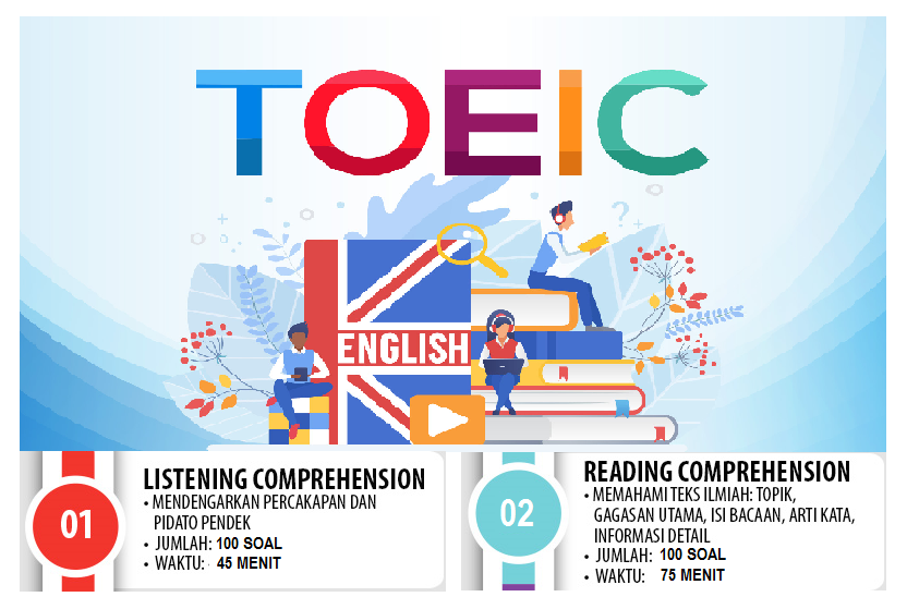 TOEIC (Test of English for International Communication) adalah tes bahasa Inggris terstandarisasi yang ditujukan untuk kalangan profesional dan perusahaan. TOEIC sebenarnya terdiri dari 2 tes terpisah, yang pertama untuk menguji kemampuan bahasa Inggris reseptif (membaca dan mendengarkan) dan yang kedua untuk menguji kemampuan bahasa Inggris produktif (berbicara dan menulis).